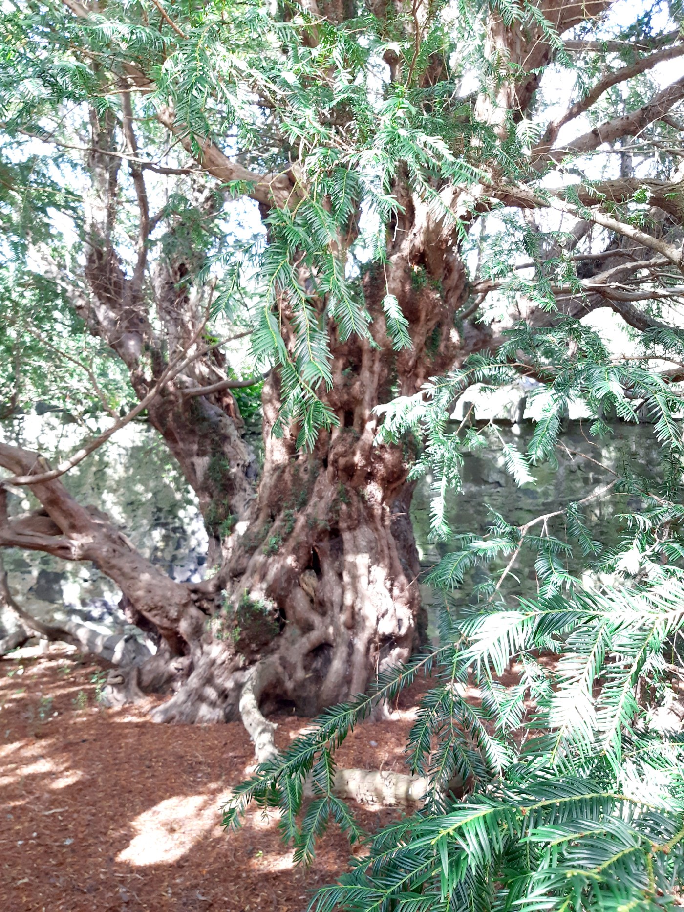 Over subsequent centuries, Yew trees continued to be cultivated within the enclosed grounds of Churches throughout Britain because although the Yew is toxic to livestock, the wood from these trees was best for producing longbows.