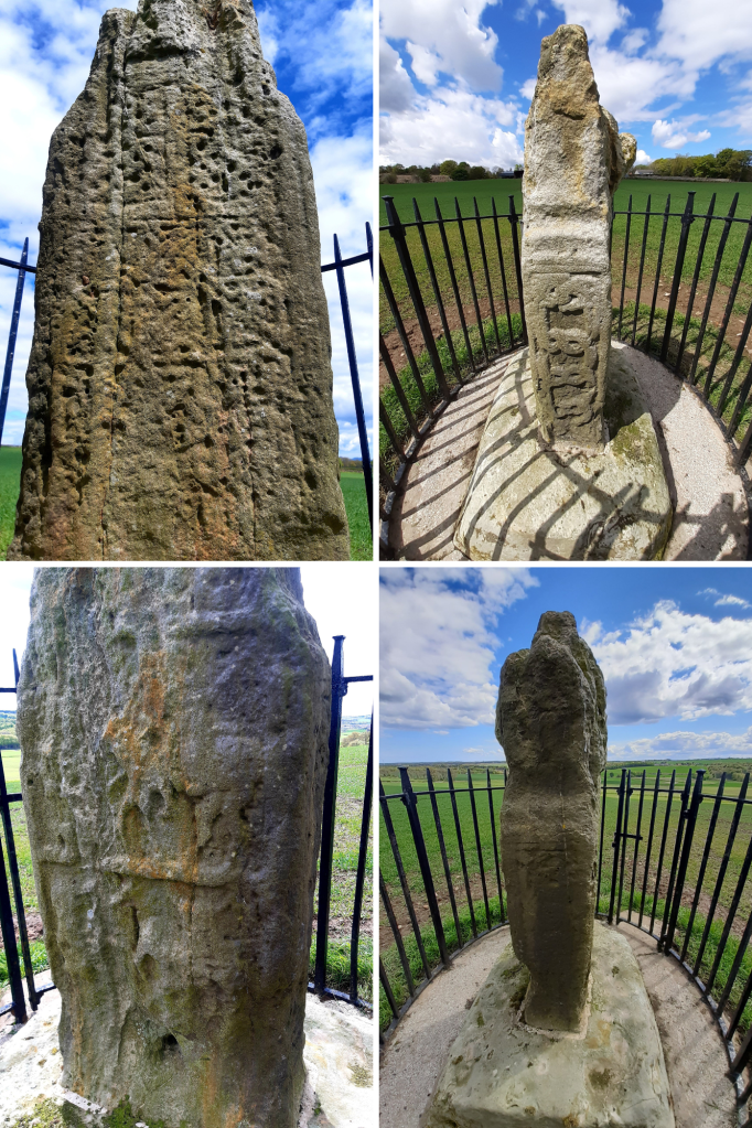 The stone stands around 4ft 10ins (1.5M) and had originally been sculpted in relief on all four sides, however, the weather over these many centuries has taken its toll. On the West facing side, intricate knotwork, typical of Celtic artistry can still be clearly seen. Stretching up the South side of the stone, two entwined, snapping serpents are depicted. It’s said that in Celtic culture, serpents were sacred to high-ranking members of society, associated with rebirth, eternal life and healing. The East face shows what once was a battle scene, with a horseman still quite visible. Unfortunately the North face of the Dogton stone is so very weathered, it’s not longer discernible.