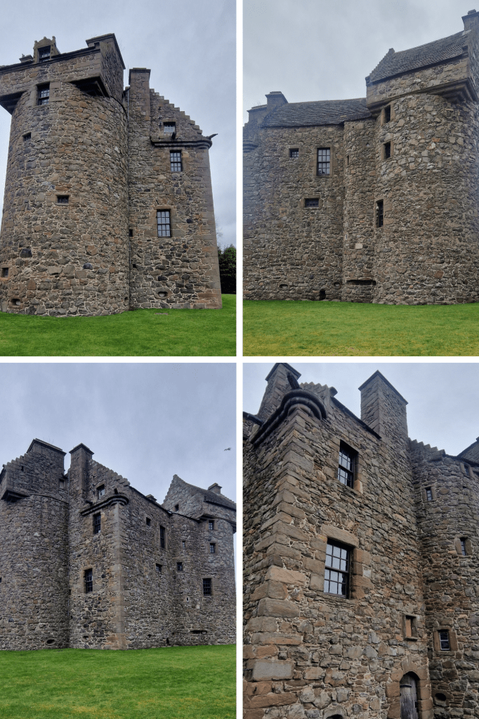 In the West Ferry area of Dundee, you’ll find the fairy-tale-like Claypotts castle. This curious and striking castle comprises a Z-plan Tower House, built as a family home by John Strachan and his son over two decades in the 1500’s and was, at that time, surrounded by several outbuildings and farm land. It consists of a rectangular main block, two large round towers and crowned with square gabled chambers at opposite corners. The round towers and diagonal corners meant that any attackers could easily be spotted.