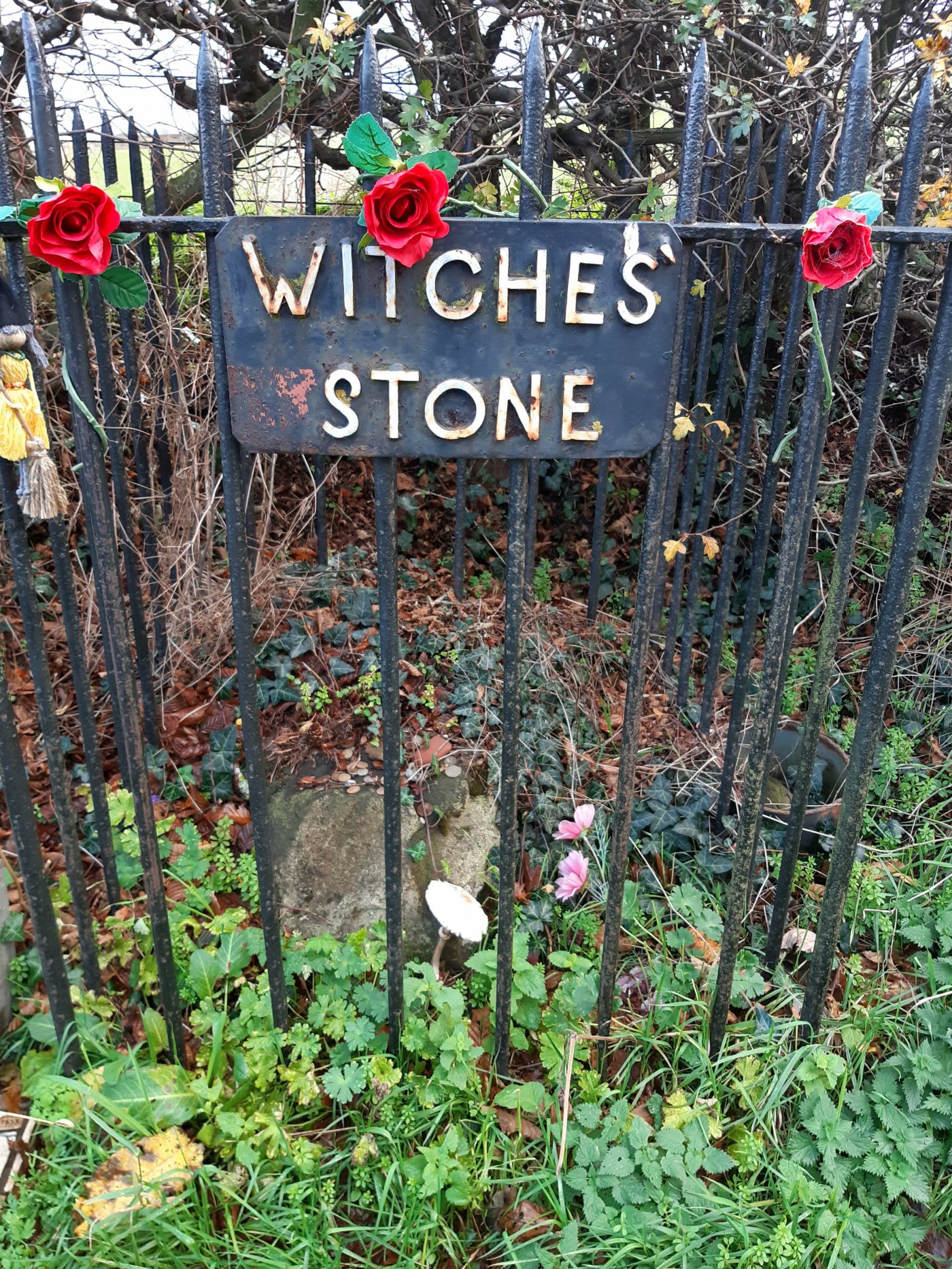 The plaque bears a dedication by local poet, Ruth Gilchrist, and reads: ‘This stone has become a place to commemorate those local people who were once persecuted as witches. We cannot undo the hurt but we can let their souls go free.’
